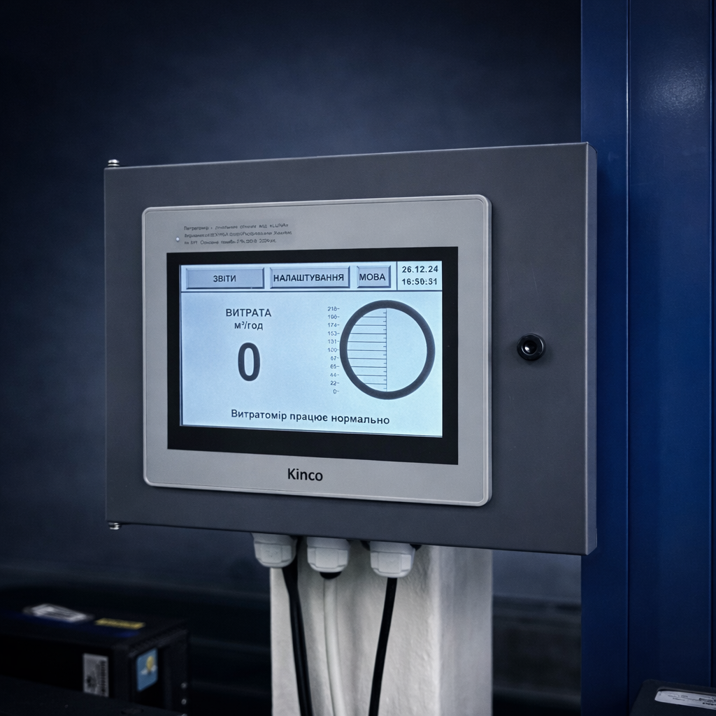 Основний вихідний сигнал витратоміра – показання дисплея блоку вимірювального. Витратомір має додаткові вихідні сигнали: інтерфейс Ethernet, інтерфейс USB. На дисплеї витратоміра відображається інформація про поточне значення вимірюваних величин:
